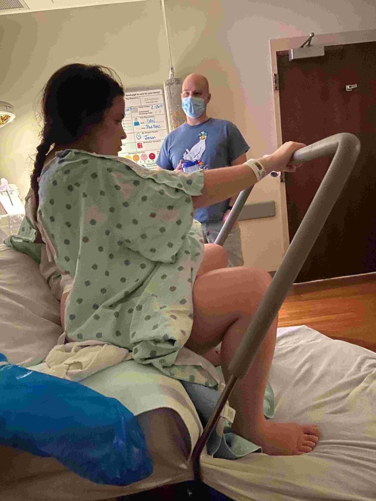 Hahawak kayo doon sa bar na ‘yun, hawakan niyo siya ng ganun magkabila kunwari tapos na kayo sa labor room ililipat na kayo sa delivery room, eto na talaga yung point na manganganak na kayo, malapit na kayo manganak, ipoposisyon kayo don into birthing position.